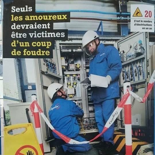 En plus du risque électrique, quelques clins d'œil sont à observer dans la vidéo. Notamment l'échelle et le refus du port du casque 😉